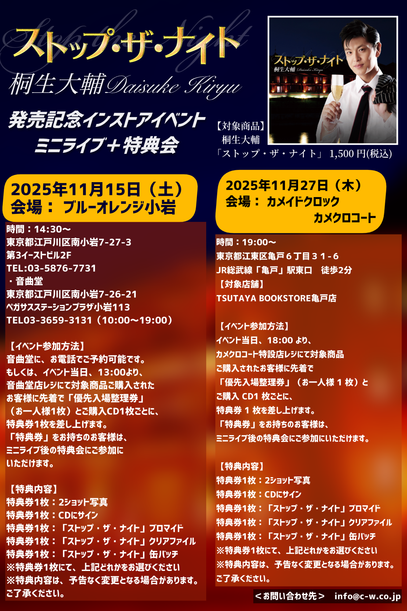 🎙️✨ 桐生大輔 New Single 『ストップ・ザ・ナイト』ご予約スタート! ✨🎙️ いよいよ待望の新曲、「ストップ・ザ・ナイト」 が Amazonにて予約開始 となりました! 📀 ご予約はこちらから👇🔗 […]